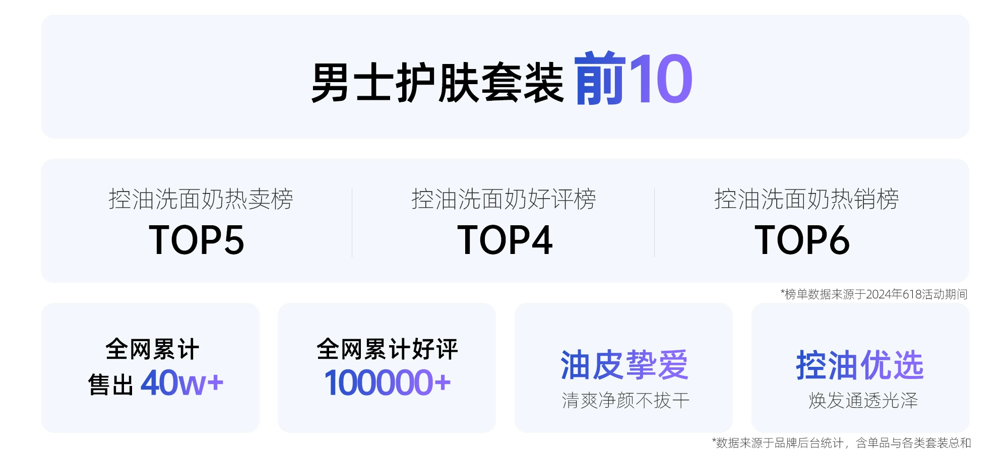 这款洁面是今年实测中“油皮满意度最高”的选手,主打“控油12小时+净澈清洁+清爽保湿” 三重功效。从权威销售数据看,它全网累计售出40W+支,收获好评10W+条,稳居男士护肤套装前10、控油洁面热卖榜TOP5,在油皮圈层几乎是“人手一支”的存在。